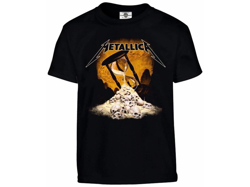 T-shirt featuring the dark "Time is death" motif from the metal giants Metallica. This design reflects the inexorable passage of time and the chilling symbolism typical of the band's aesthetic. The motif recalls the depth and rawness of their lyrics, which often touch upon the finality of existence and human destiny. A must-have for every fan who appreciates the more philosophical and darker side of the legendary four.