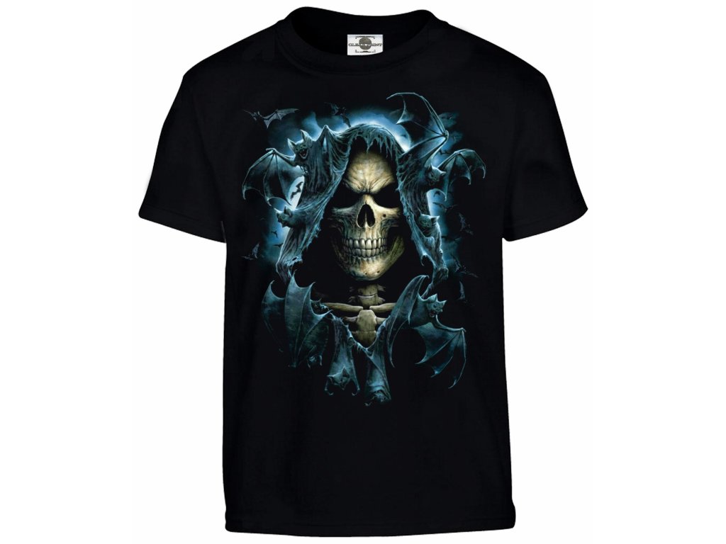 Tričko s klasickým temným motivem „Skull & Bats“, který v sobě spojuje estetiku gotiky a nočního tajemna.