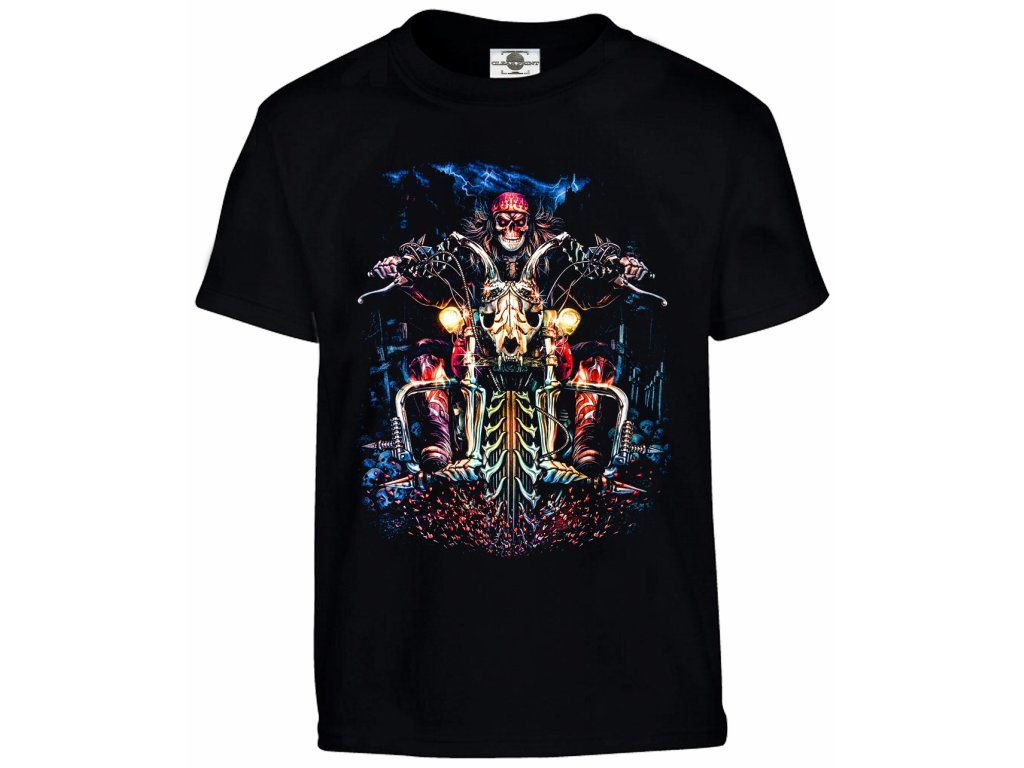 Tričko s dravým motivem „Skull Rider“ pro všechny milovníky silných strojů, benzínu a nekonečné svobody na dvou kolech.