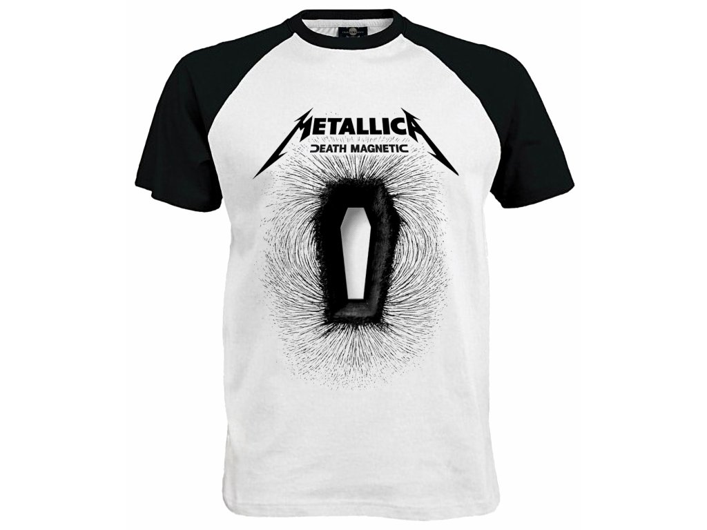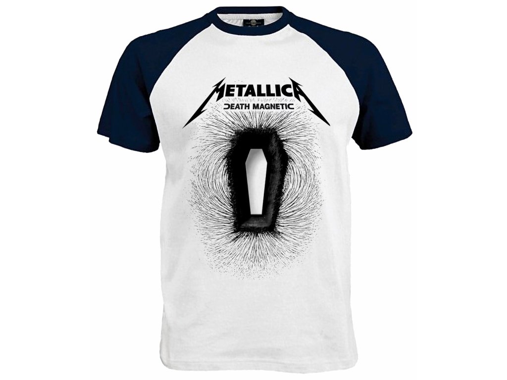Tričko Metallica Death Magnetic. Metallica je americká metalová skupina založená roku 1981 v Los Angeles. Skupina se dala dohromady na základě inzerátu v losangeleských novinách, který podal bubeník Lars Ulrich. Death Magnetic je deváté studiové album legendární americké trashmetalové skupiny Metallica, které vyšlo 10. září 2008. Je to první album se současným baskytaristou Robem Trujillem a zároveň první, jehož producentem je Rick Rubin.